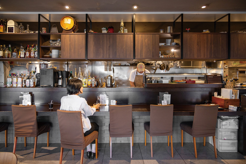 ライブ感あるカウンターで本格洋食を楽しむ贅沢。