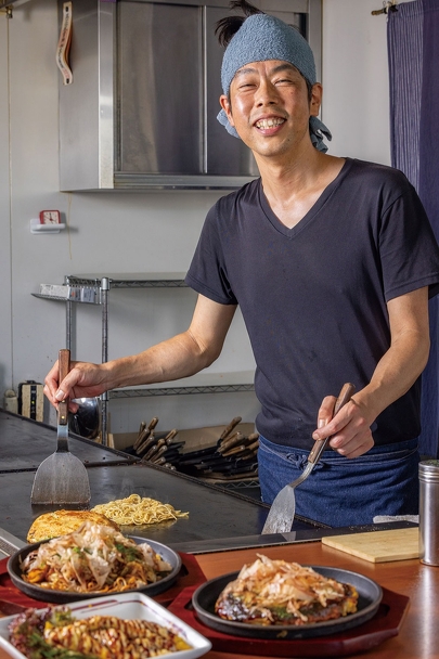 粉物の本場・大阪でお好み焼の修行を重ねた店主が営む新撰組。