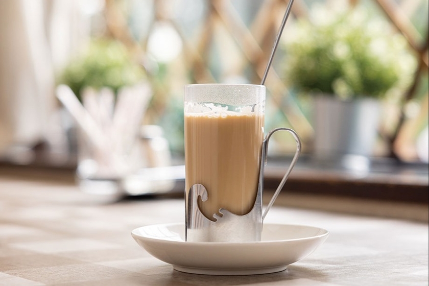 注文をうけてから、小鍋でコトコト。苦味が出すぎず牛乳の甘みがひきたつカフェオレ。器もレトロでかわいい。