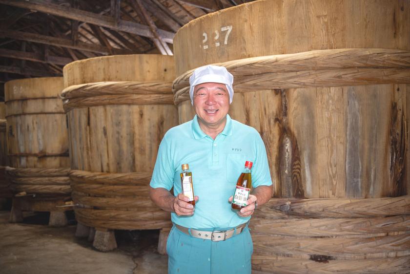 江戸時代から製造を始めて200余年。蔵には白醤油を仕込む木桶がズラリと並び、圧巻です。伝統の技を大切にしながらも、新たな可能性を追求し、時代が求める商品開発にも余念がありません。最近では海外向けにトリュフを加えた白醤油やお寿司専用のSUSHI SAUCEをリリースし、注目を集めています!